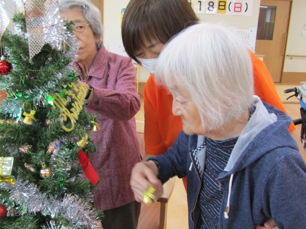 一足早く、クリスマスツリーの飾りつけを始めました。